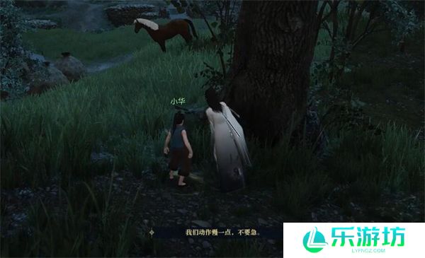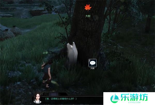 接着,前往坐标(619, 297),在这里按“F”互动,与树旁的物品互动。