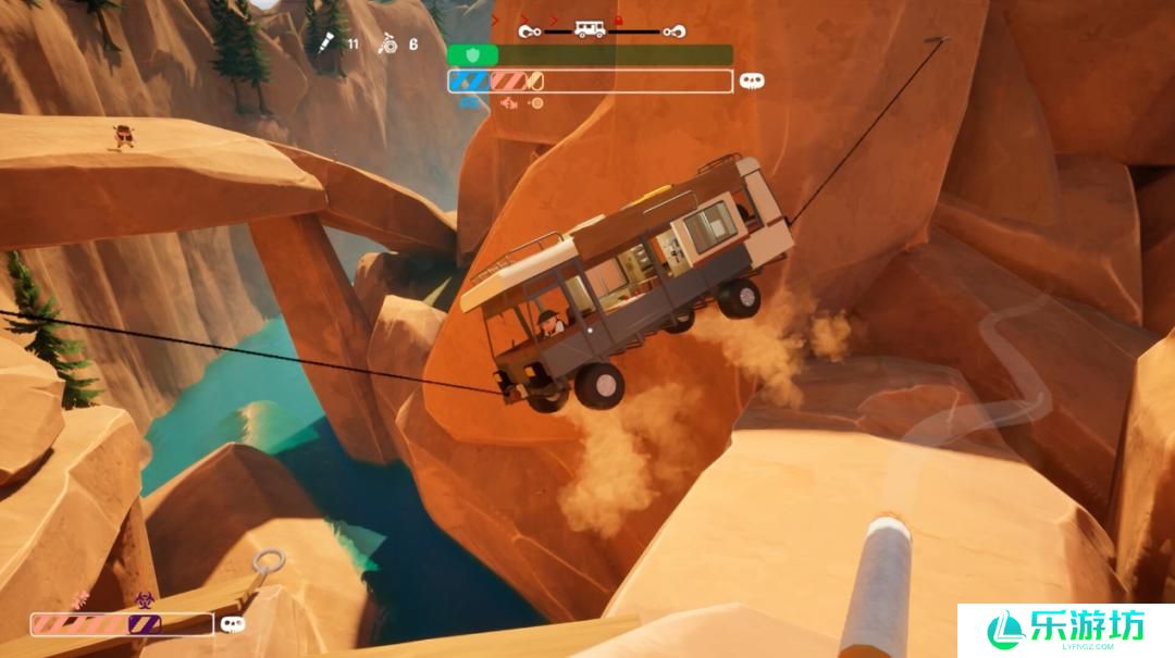 在游戏中,四名玩家假期结束后自驾回家,因种种意外不得不改道行驶。现在,玩家们需要驾驶房车穿越偏远地区,找到通往65号公路的出口。途中,四名玩家需通过合作,将房车从山谷安全开到终点。玩家会遇到野生动物、断桥等状况,既要互相配合,使用解毒剂、汉堡、肾上腺素注射剂等道具维持健康状态,也要通过默契协作,借助绞盘等工具,让房车顺利通过危险路段。