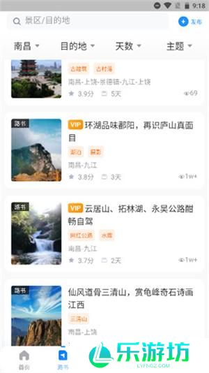 3、点击进入路书导航,你可以筛选出发地、目的地和行程天数,查看推荐的路书;