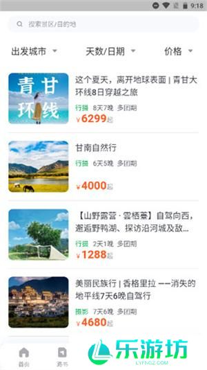 4、点击进入主推活动,可以筛选类别、目的地、天数和价格,查看推荐的自驾团队。