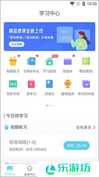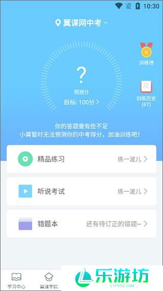 1、在本站下载好翼课网英语口语训练app,进入“学习中心”板块,可以看到错题本、作业以及考试等内容。
