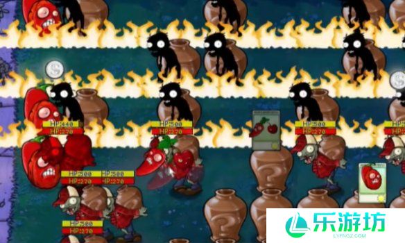 3、然后将出现的辣椒樱桃放在僵尸就能消灭三行的僵尸。