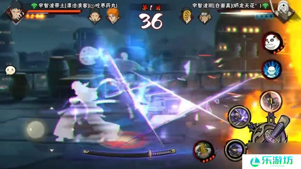 漂泊带土拥有两种形态,分别是归鞘和拔刀。两种形态一技能相同,普攻和其它技能均不相同。登场默认归鞘形态,可通过一技能划普攻来切换形态。特殊机制,漂泊带土释放任何技能都需要消耗血条下方能量条,技能命中敌人时会恢复。一技能默认向前瞬身,摇杆前拉会向前瞬身,摇杆往下拉会往后瞬身。跳起时无法取消后摇,瞬身带有无敌帧,可以躲避伤害。任何方向瞬身后点击普攻,都会追加特殊斩击,同时会切换形态。