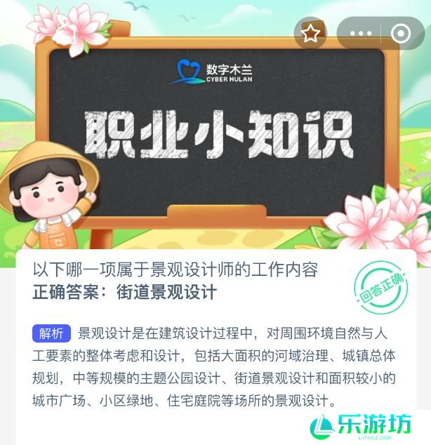 以下哪一项属于景观设计师的工作内容?【蚂蚁新村每日一题】2025年11月7日题目已发布!坚持答题,积累木兰币,即可加速小镇建设。答对本题,立即可享“产速+3/时”的加速奖励!今天正确答案是【街道景观设计】。‌