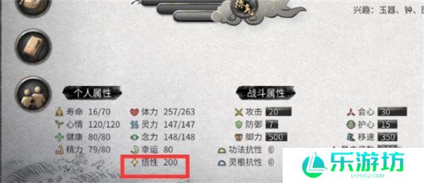 2、建议大家优先选择悟性,提升悟性后机会提高学习功法的速度和效率,间接提高了角色的战斗力。